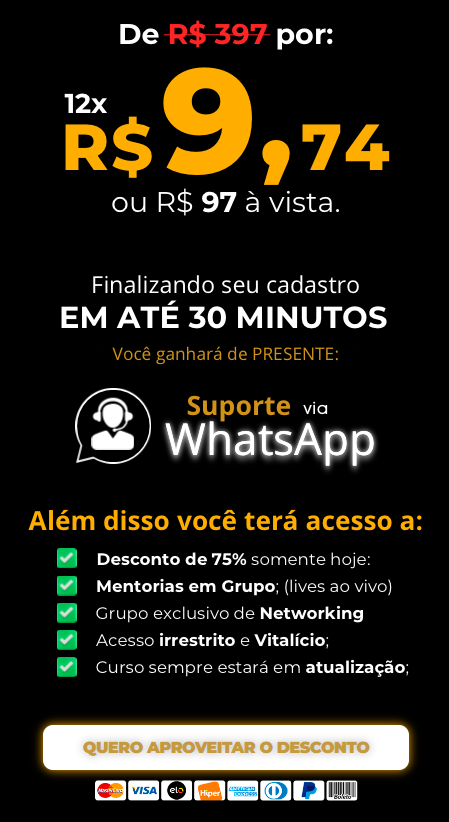 ATENÇÃO: São as últimas vagas disponíveis na promoção atual com desconto do site oficial. Assim que a quantidade de vagas da oferta for atingida, o valor voltará ao normal.